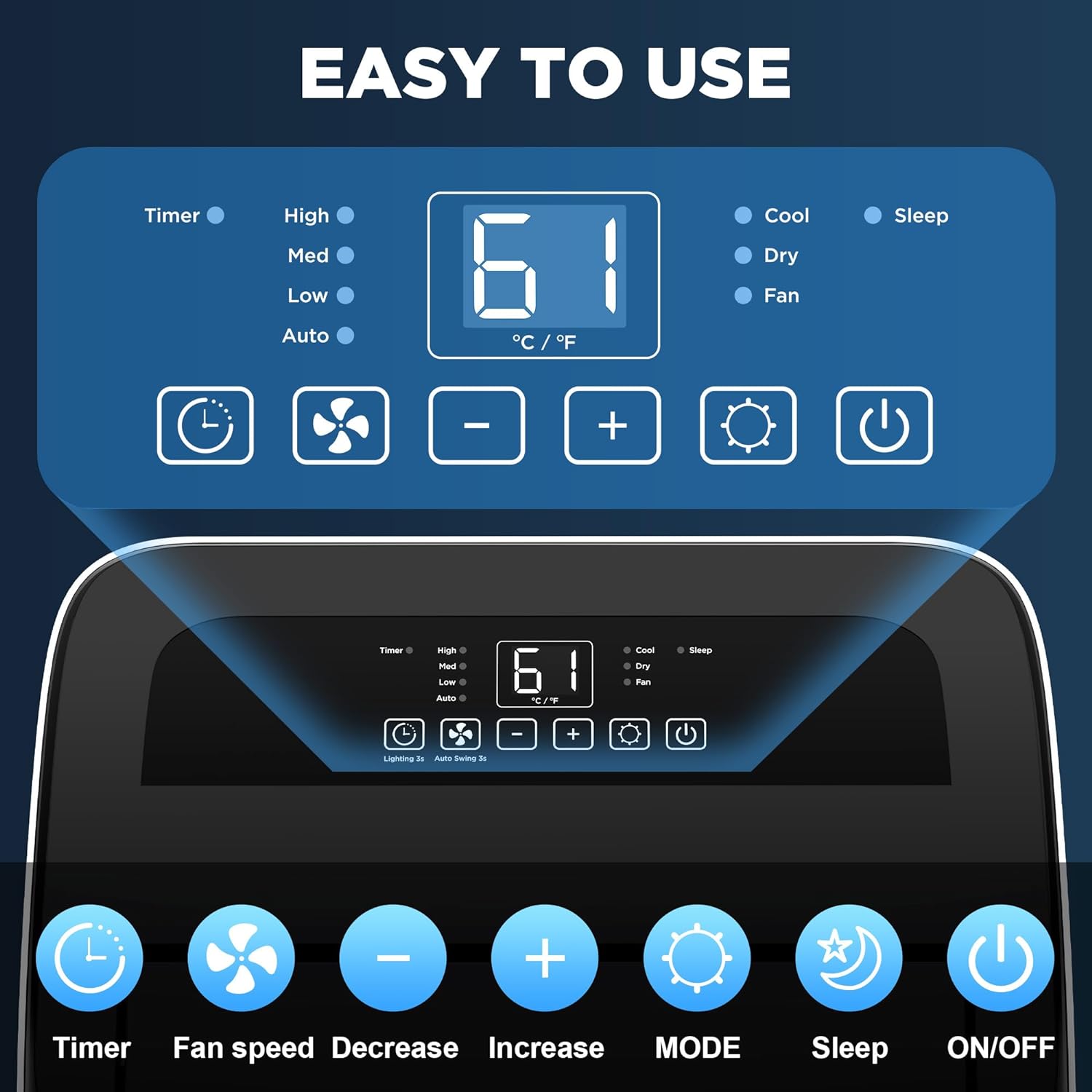 - ❄️【Enhanced Wind Speed & Auto-Swing】 Built-in more powerful and upgraded fan system .with 0-80° Wide-angle airflow and auto-swing function cools down your room in all directions. angle can be freely adjusted and the air is flowing evenly in the whole room .which can distribute the cold air evenly to cool your room at the fastest speed. so that you can feel cold wind anywhere at home.