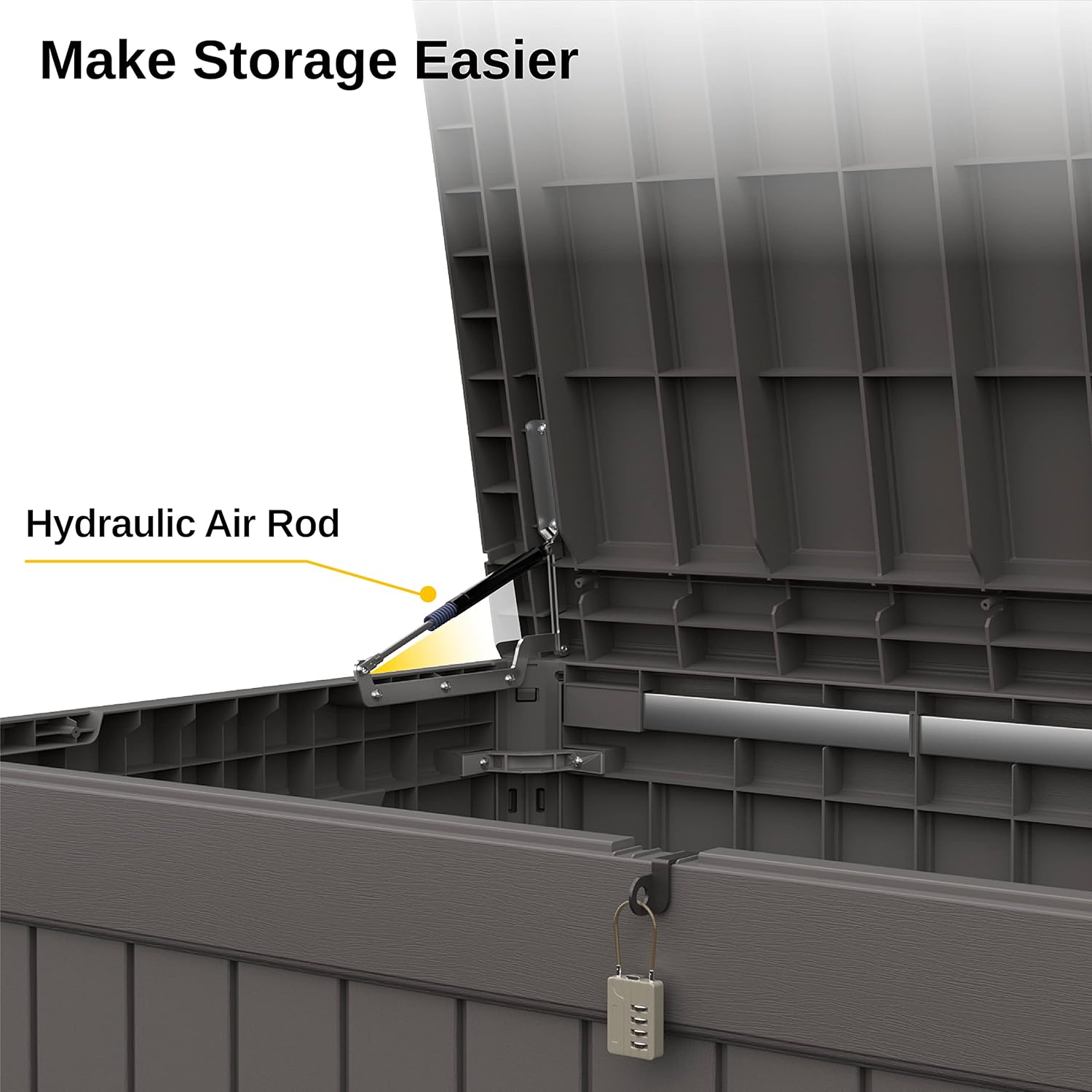 - Safe and Injury-Free: The EAST OAK outdoor storage box equipped with hydraulic lever design to ensure safe operation without risking pinching your hands.