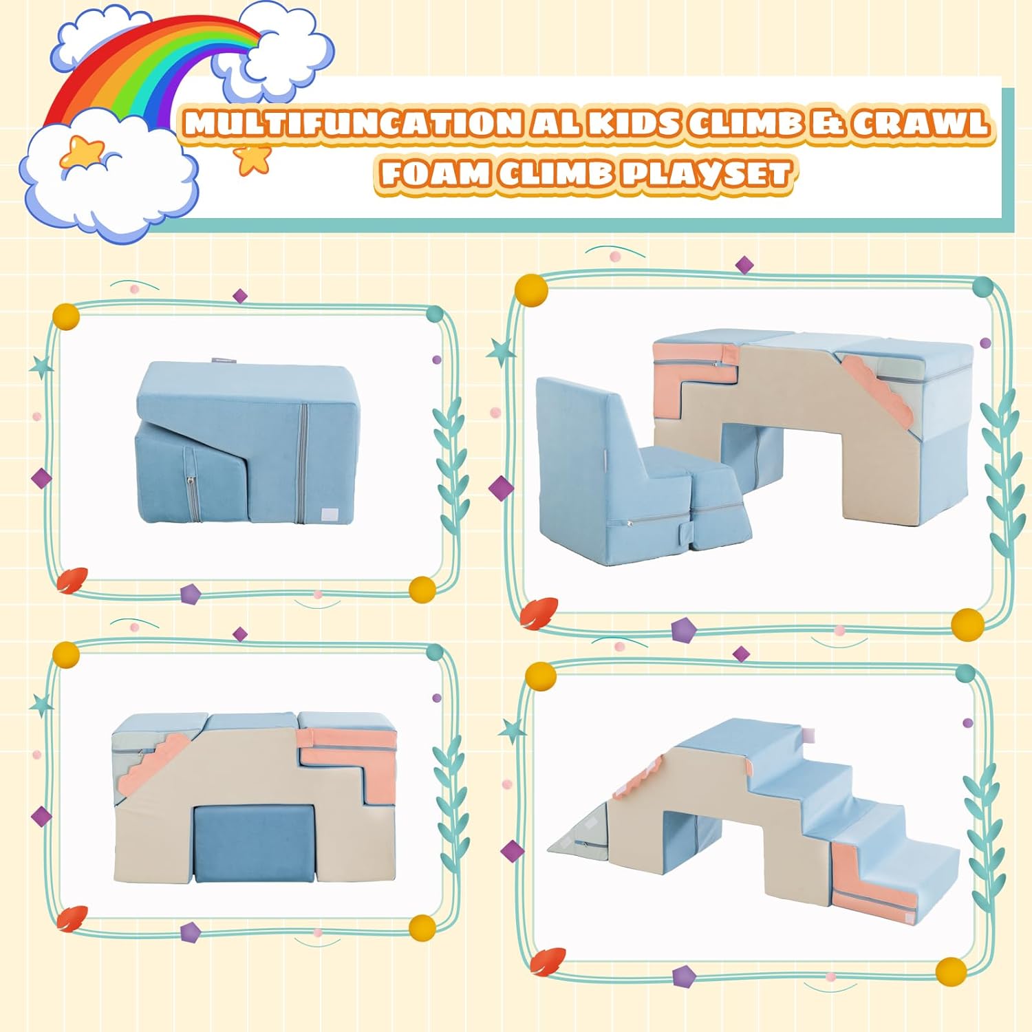 - 【BEST FOR KIDS】This kids foam play gym creates a great scenario for the whole family to increase interactive activities. You will have more opportunities to accompany your children to enjoy their little world! If you're looking for a children's sofa that will be really safe and healthy for your child. then the Asweets soft climbing structures is the perfect choice!