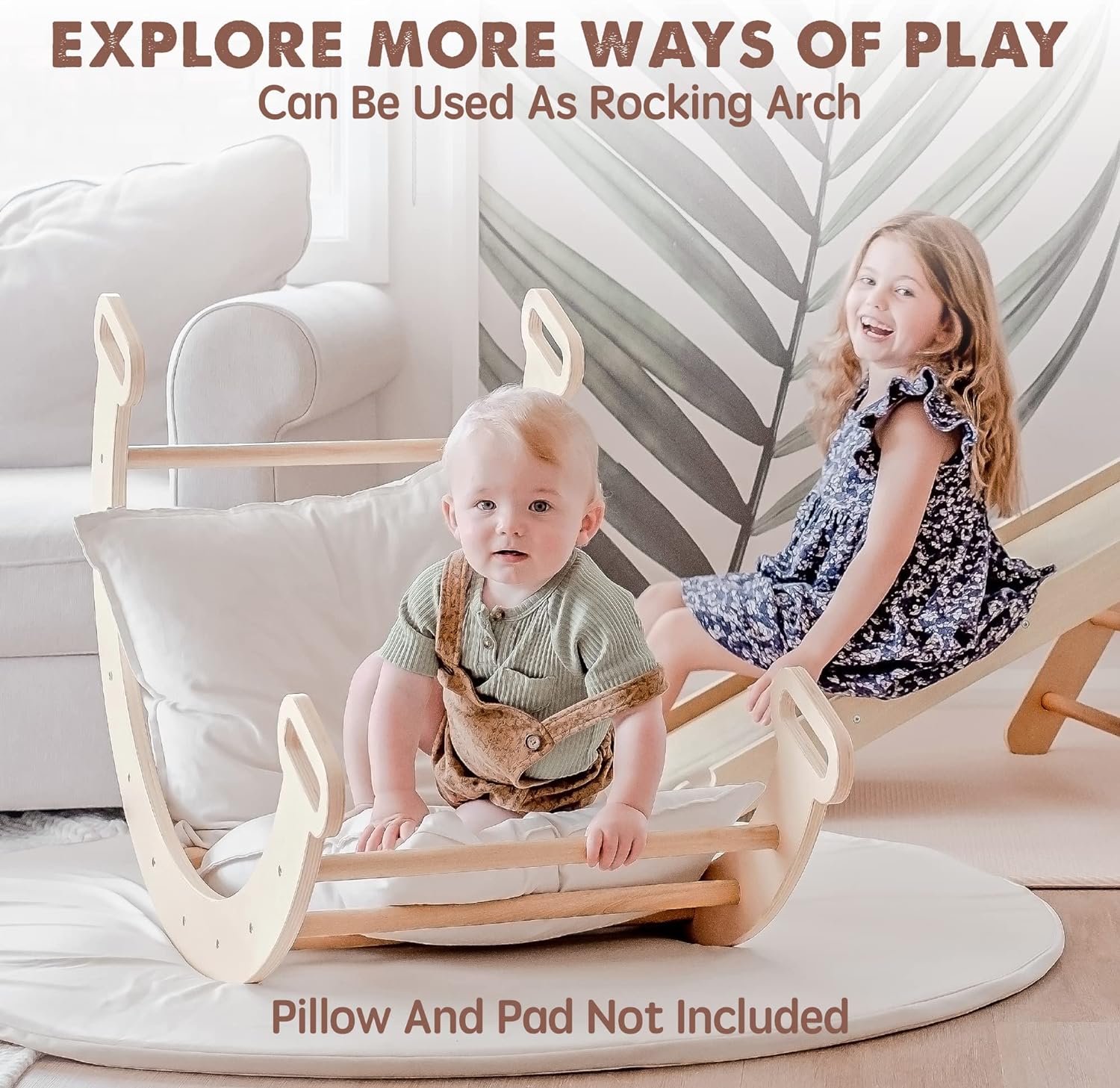 - ⭐Versatile Play Modes - Tiny Land Climbing Toy Set includes a pikler triangle. one thick board. and a climbing arch. The thick board has two sides. which can be used as a climbing board and slide board. And you can invert the climbing arch. put a pad. and use it as a big rocker. Pad (not included) size recommendation: L x W - 47 x 24 inches. This indoor playground can be set up in lots of ways to keep it interesting.