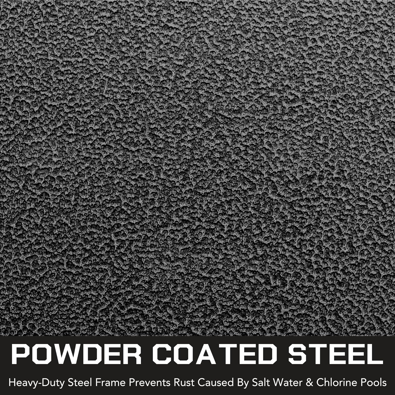 Powder-Coated SteelThe powder-coated steel + stainless steel bolts offer full rust protection against chlorine & saltwater pools. |