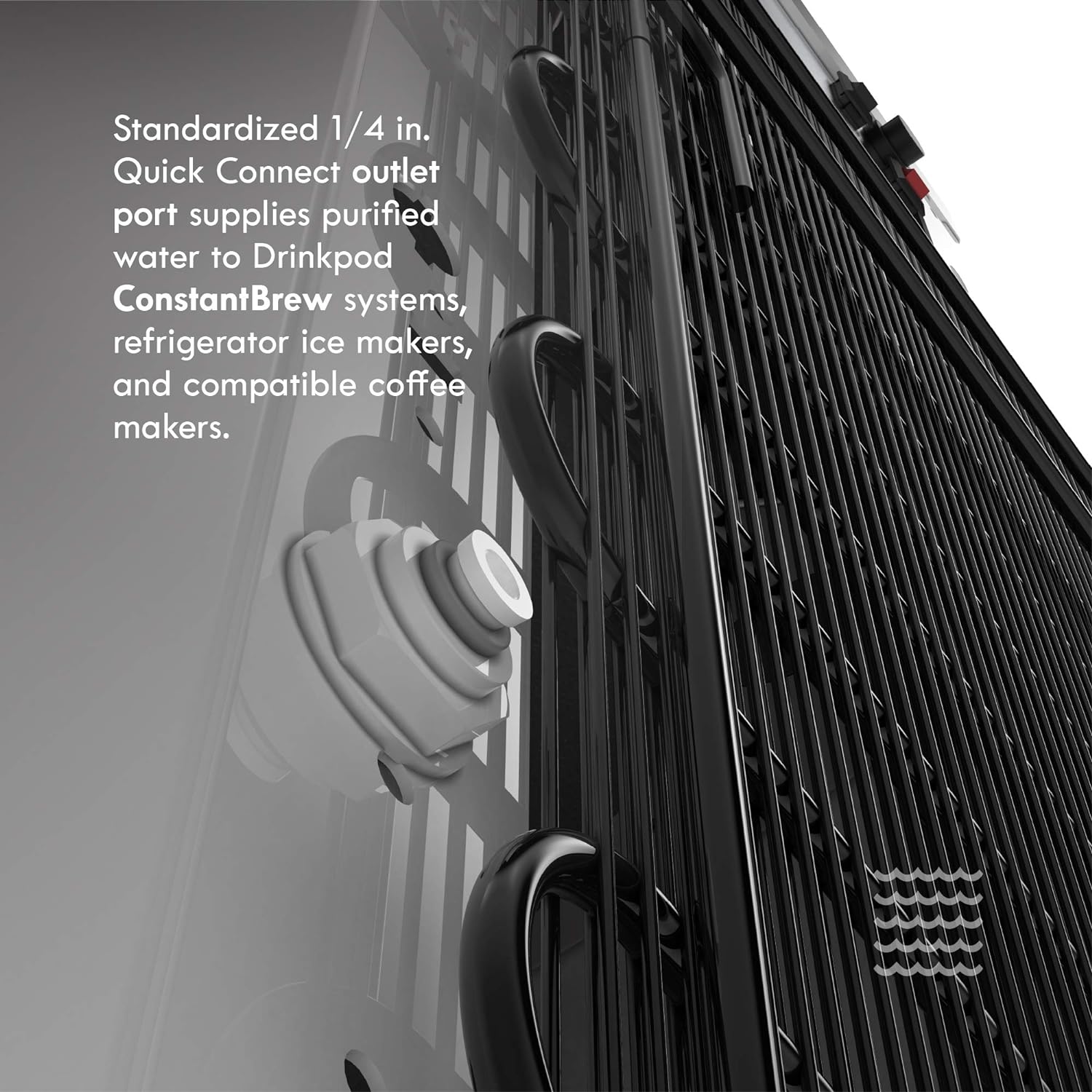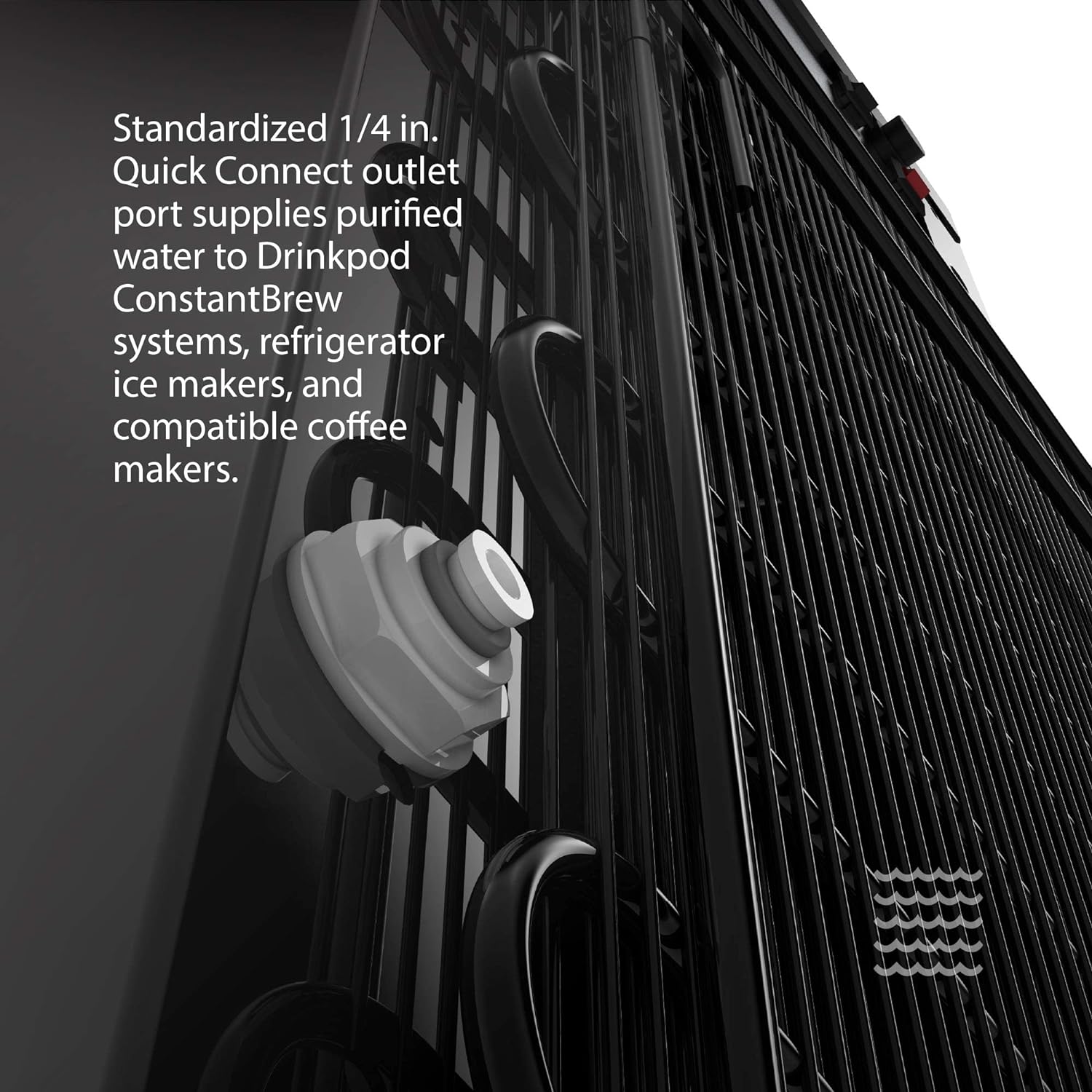 CONSTANT FLOWThe Drinkpod Pro Series 6 is capable of providing a steady stream of deliciously fresh water. Water is supplied to the appliance through its standardized 1/4 inch quick connect port |