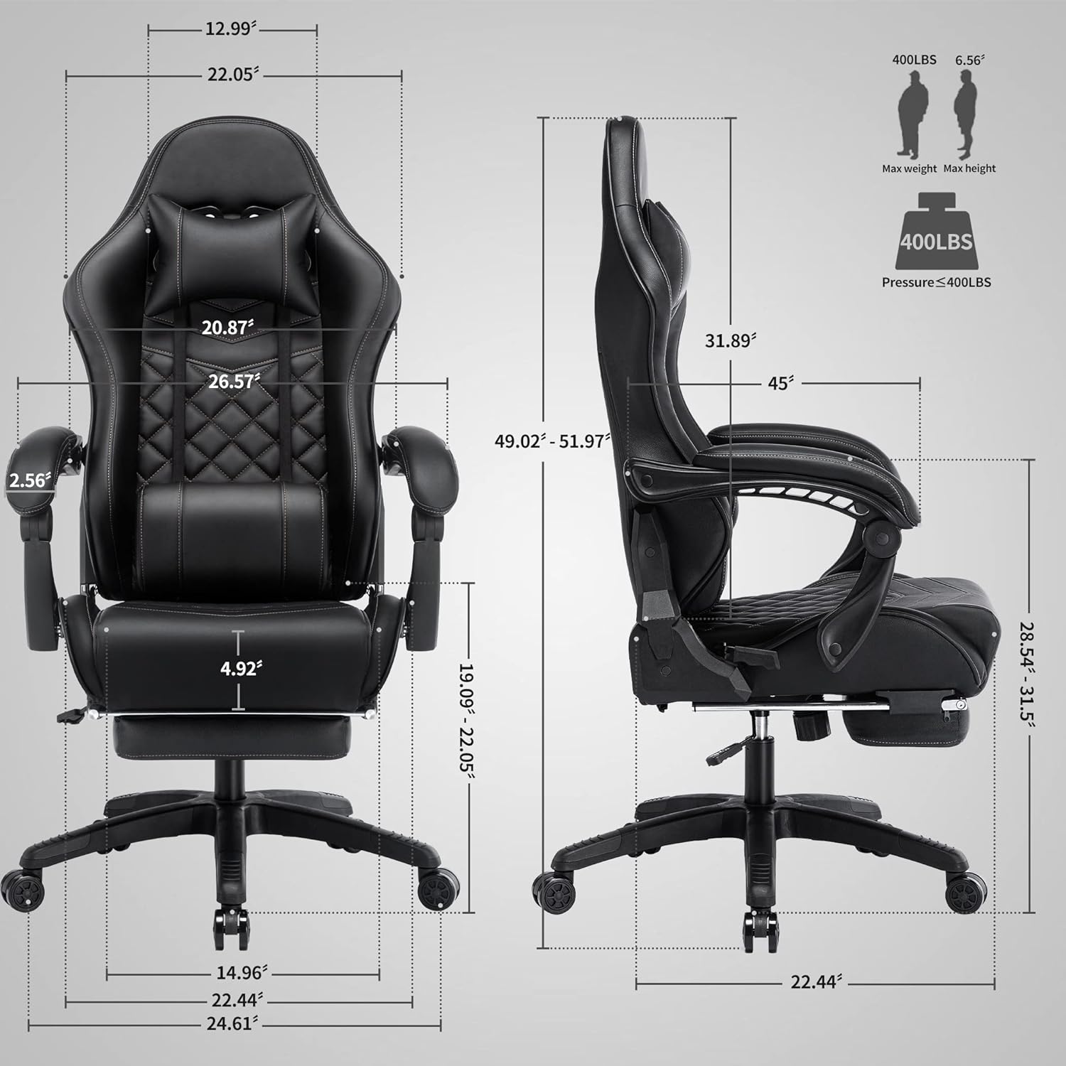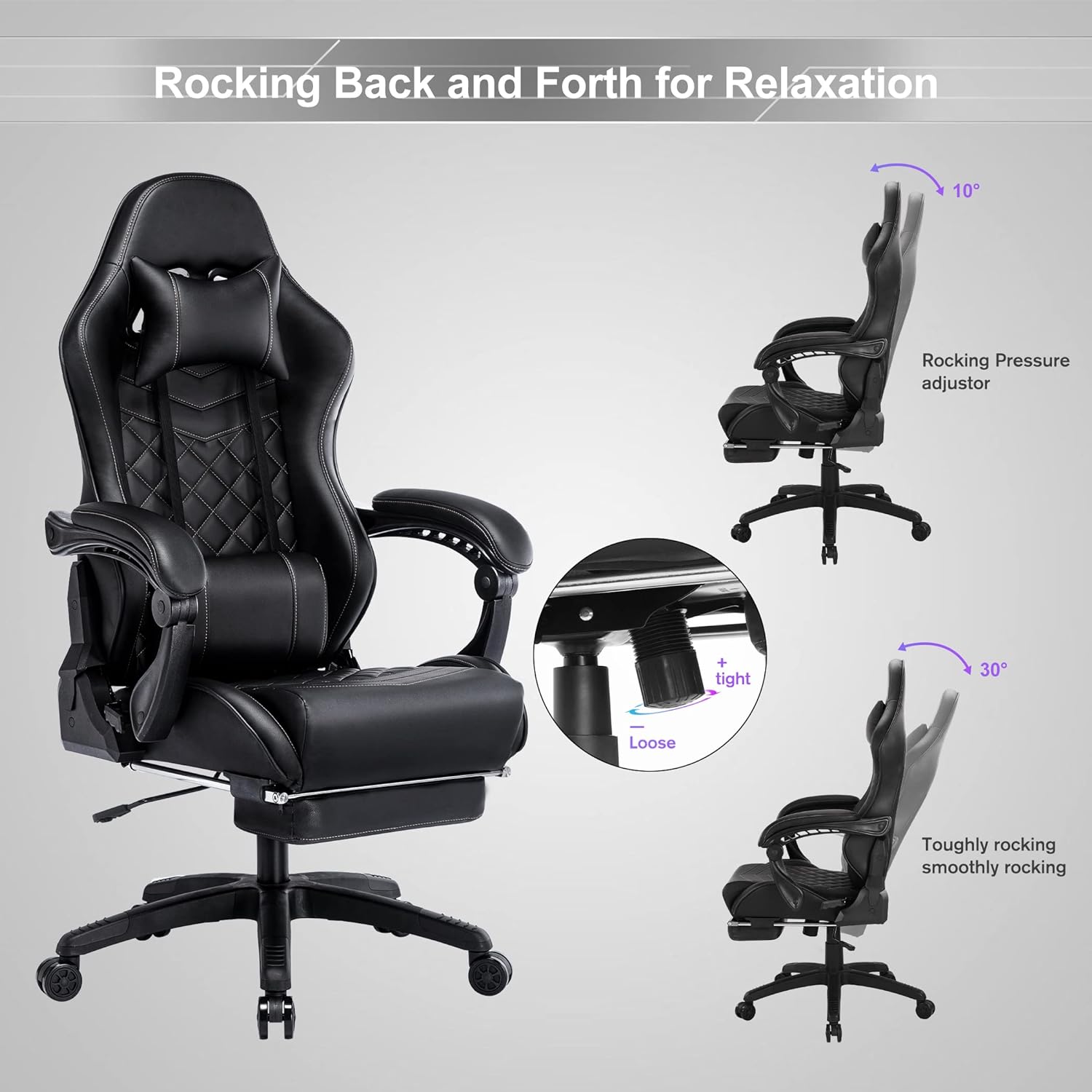 - 💦Excellent Strong Assistance - Thickened memory foam seat cushion can disperse the pressure of waist and buttocks. Medium softness is more suitable for focusing on office games. High quality PU leather wraps the whole throne. making it unforgettable both in appearance and skin experience. Under the wide angle of 90 ° to 155 ° and the freely retractable pedal. you can lie on the chair in one second.