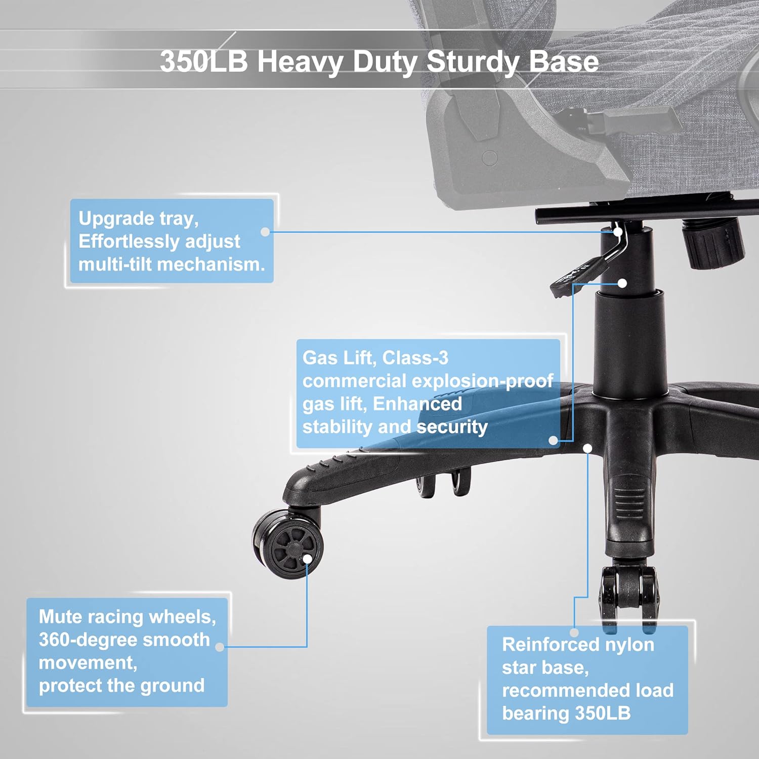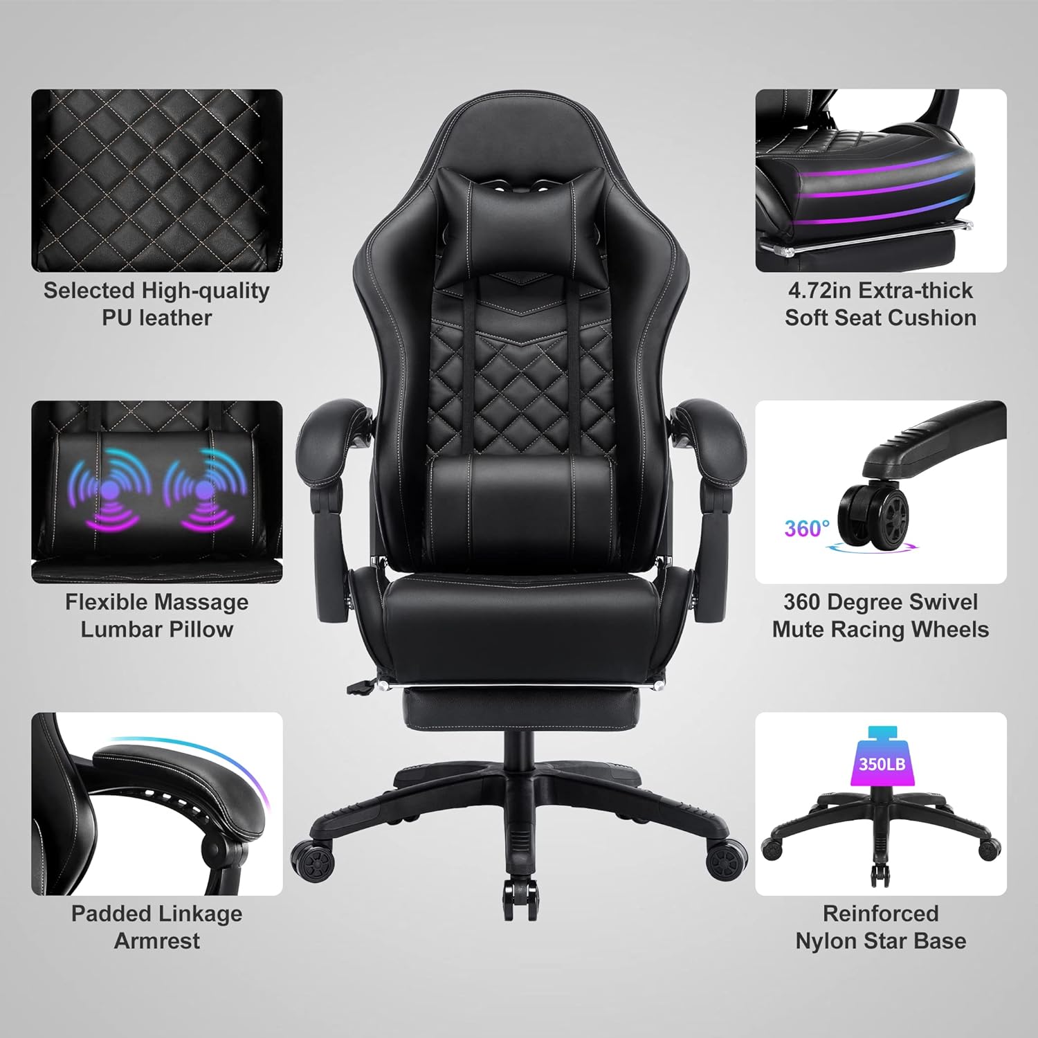 - 💦Stable and Reliable - The massage game chair is made of high-quality leather. fabric and memory foam to ensure that you can enjoy our chair for many years! The heavy metal base with reinforced metal frame. three-level explosion-proof gas elevator and silent PU casters provides a strong base for the chair. which can withstand 350 pounds.
