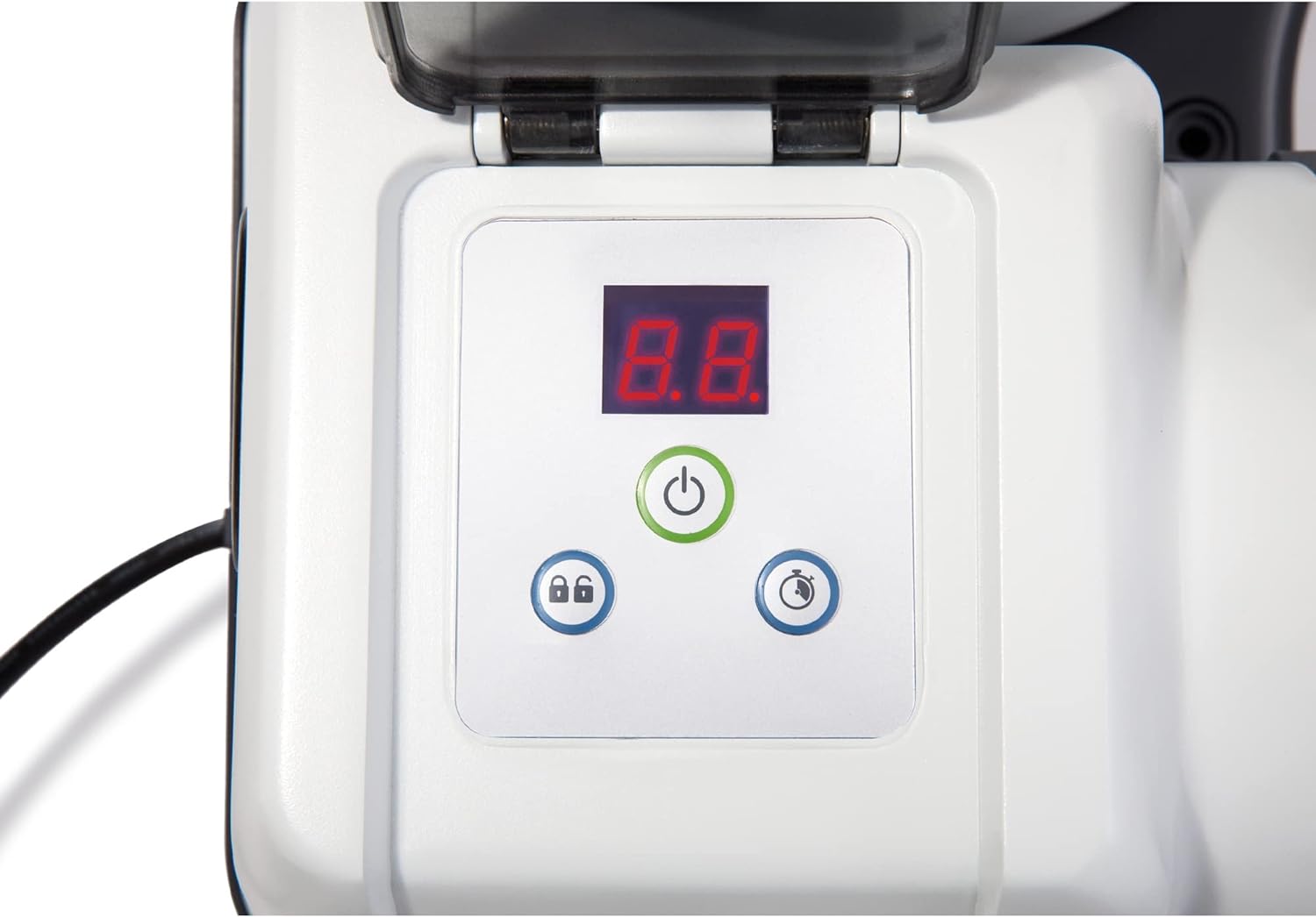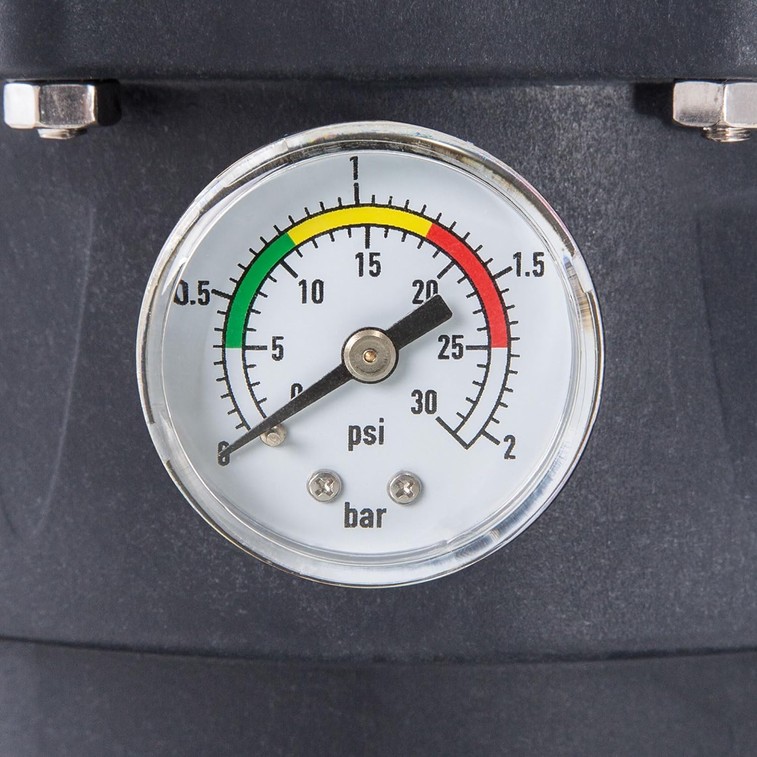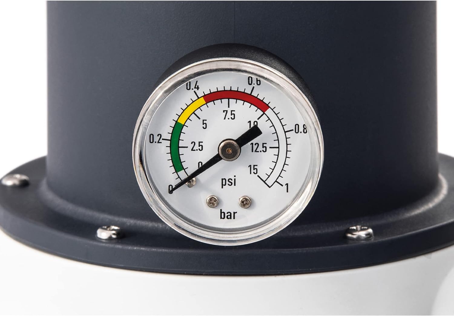 - Built-in 24-hour timer. allowing you to set automatic filtration times. reducing daily maintenance; Pump includes an ergonomic handle. pressure gauge. and a ground fault circuit interpreter (GFCI)