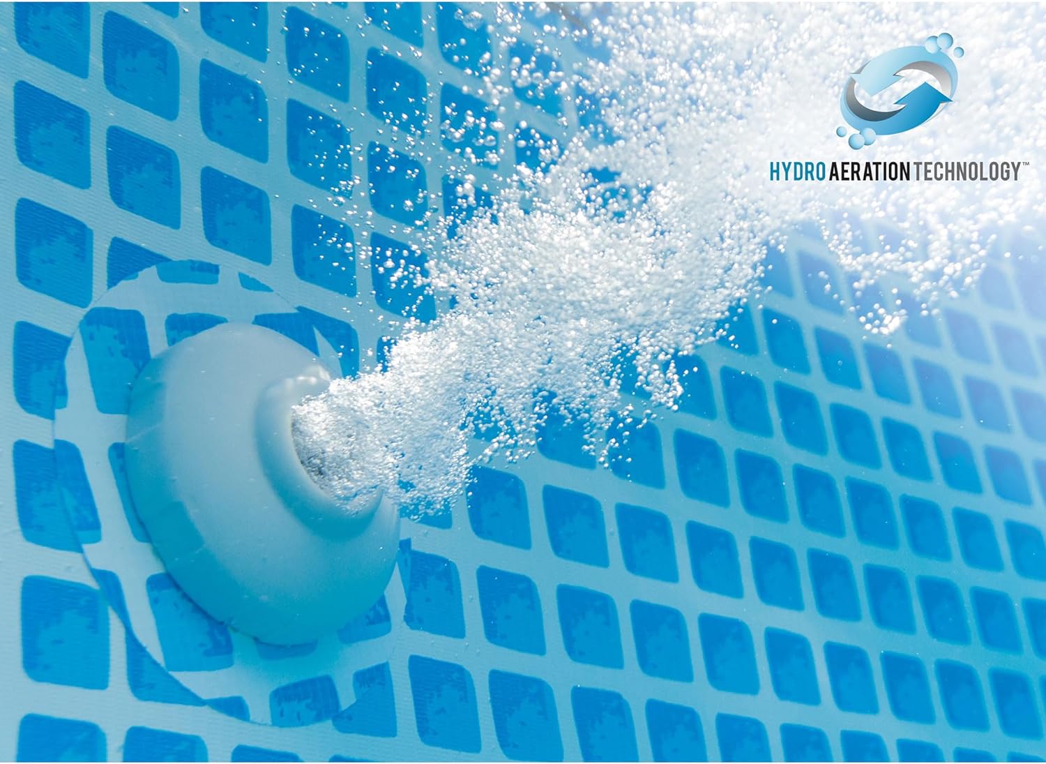 - Intex Krystal Clear sand filter pump with Hydro Aeration Technology enhances circulation and filtration. improving water clarity and increasing negative ions in the water