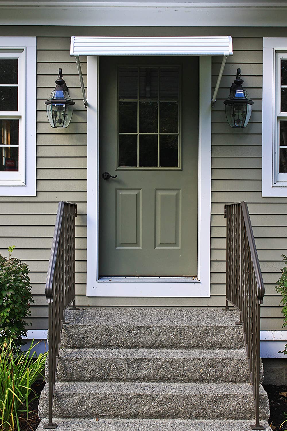 Aluminum door canopies are the perfect choice when you need protection from the elements. Our aluminum canopies are made to last and feature a heavy-duty mill finish aluminum framework. Door canopies are designed to protect your entry from both the rain and the snow. Includes support arms. Support arms require a minimum of 3 inch of mounting space over the door. Includes 5-year against manufacturing defects. Width is 60 inches and projection is 42 inches. Easy to install. Assembly and installation instructions are included. Assembly Required. Color: White optional side wings are available item # 42000.
