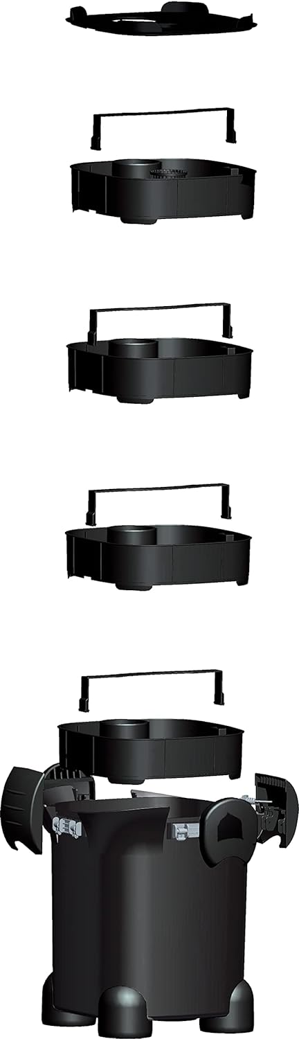 - CONVENIENT. CUSTOMIZABLE. AND COLOSSAL: Inside the belly of this beast. there are 4 large stackable media baskets / trays. with built-in handles for utmost convenience of handling. While the Cascade Max Flow Canister Filter comes with Bio-Floss Pads and a coarse Bio-Sponge. you can place additional filter media inside to best meet your aquarium's demands.