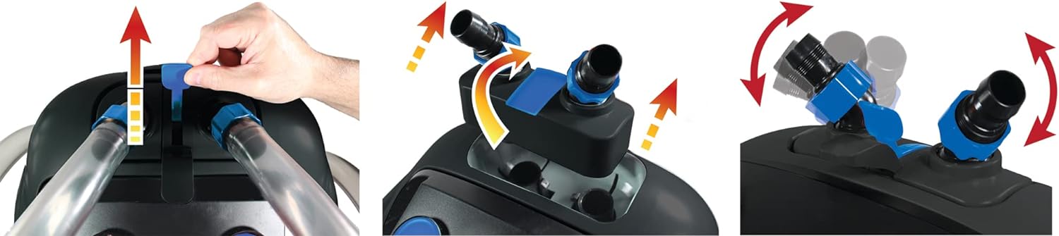 Let's Talk About FlowBy using the canister filter's top handle. the water's flow rate can be adjusted as needed. With that said the large diameter intake and output tube s are more than enough to handle the powerful water flow. |