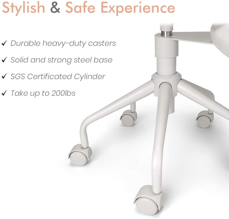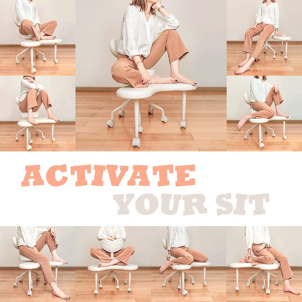EXCLUSIVE PATENTED DESIGN - HOME OFFICE SOLUTION: As a revolutionary chair. it allows you to sit in a variety of different positions such as cross-legged. squatting. kneeling. and countless others. Perfect for home workers. yoga lovers. meditation fanatics and everyone who feel tired with ordinary fixed sitting positions and would like to break the boundary of those conventional office chairs. ACTIVATE YOUR SIT: Created by ergonomic engineer and designers. it provides an active flexible seating outlet that promotes constant movement and stimulation of your body. Change positions from time to time and sit in your most comfortable way. Long-duration sitting will no longer be boring or painful. FLEXIBLE TO SWITCH: Designed with the 360-degree swivel footstool. it gives you more freedom to sit. Other than switching from different special positions. when you are not in the mood to casually sit or just want to sit as usual for a while. you can always turn it aside and use it as a normal chair. COMFORT & PAINLESS: Padded with the high resilience. high density foam. the 3.7-inch extra thick seat cushion plus the 1.5-inch thick footstool provide comfort support for your hip. feet. knees and ankles while switching positions. The crescent-shaped ergonomic backrest gives perfect lower back support and help relieves back pain. SAFE & DURABLE: Assembled with the SGS certificated cylinder. solid steel base and the heavy-duty casters. it will ensure you a safe and durable experience. Its polyurethane leather material is extremely soft touching and easy to be cleaned with leather cleaners. Even the white color won’t be a pain.