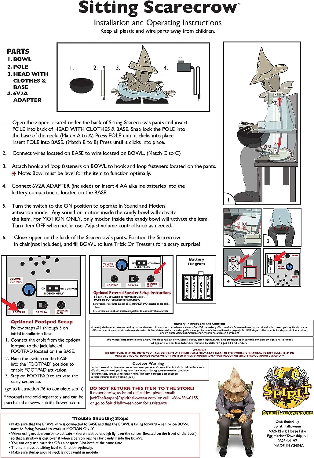 - Includes: Scarecrow animatronic. candy bowl. adapter. and instruction manual